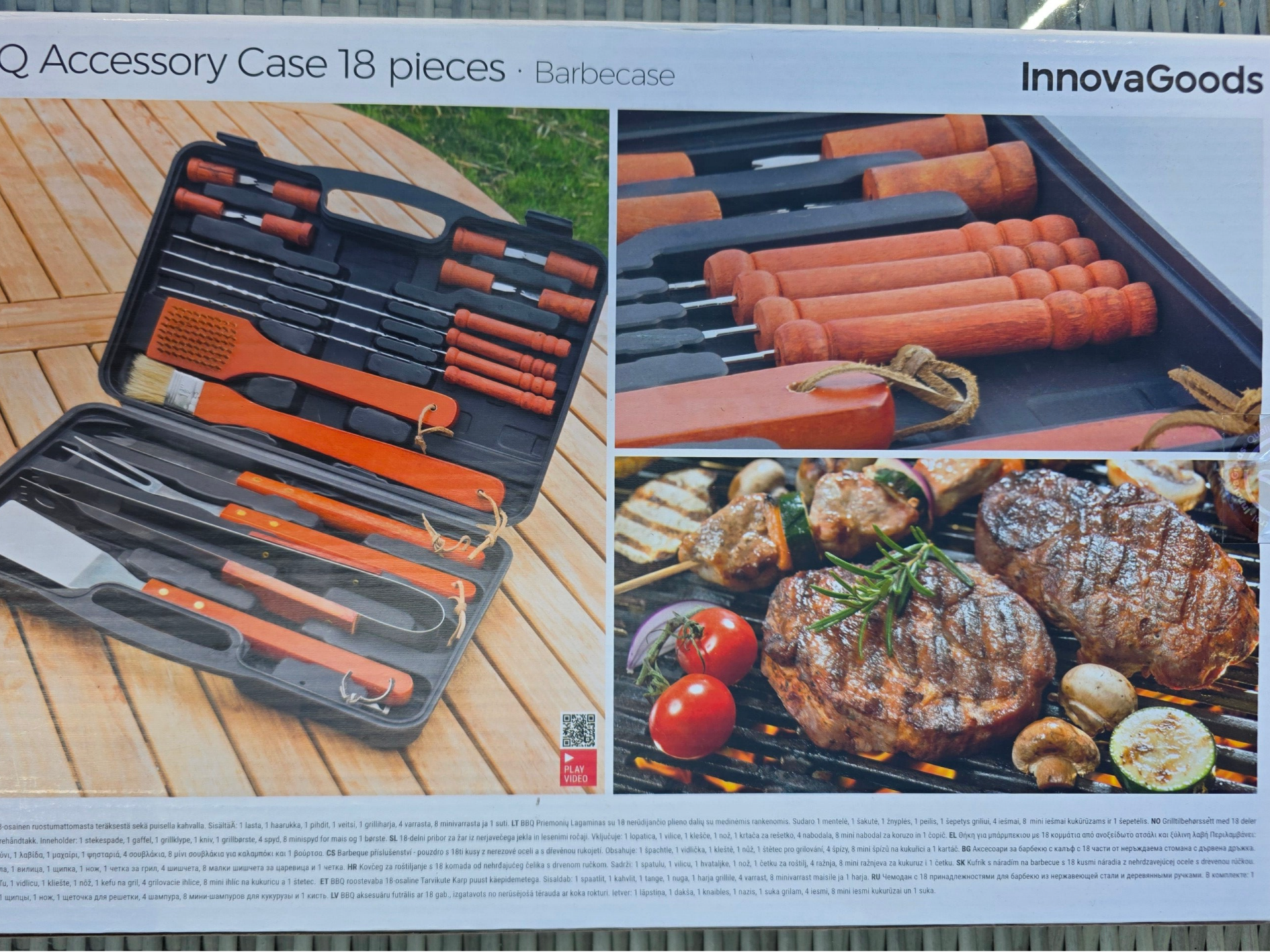 Erleben Sie Grillgenuss pur mit dem lnnovaGoods Grilkoffer, Ihrem idealen Begleiter für unvergessliche Familienfeste. Mit 18 hochwertigen Werkzeugen aus Edelstahl, Holz und PE sind Sie für jede Grillcufgabe bestens gerüstet. Entdecken Sie die Freude am Grillen neu. Dieser Koffer beinhaltet alles, was Sie brauchen: Spatel, Gabel, Messer und vieles mehr. Für Anfänger bis Grillmeister, eine Bereicherung jeder Grillparty. Das moderne Design vereint Funktionalität mit Ästhetik. Schwarz und Orange treffen auf Holz, um nicht nur durch Leistung, sondern auch durch Erscheinungsbild zu überzeugen. Dank des kompakten Designs und des praktischen Tragegriffs ist der Grillkoffer mühelos zu transportieren und zu verstauen. Ideal für Ausflüge ins Grüne oder gemütliche Abende im eigenen Garten.