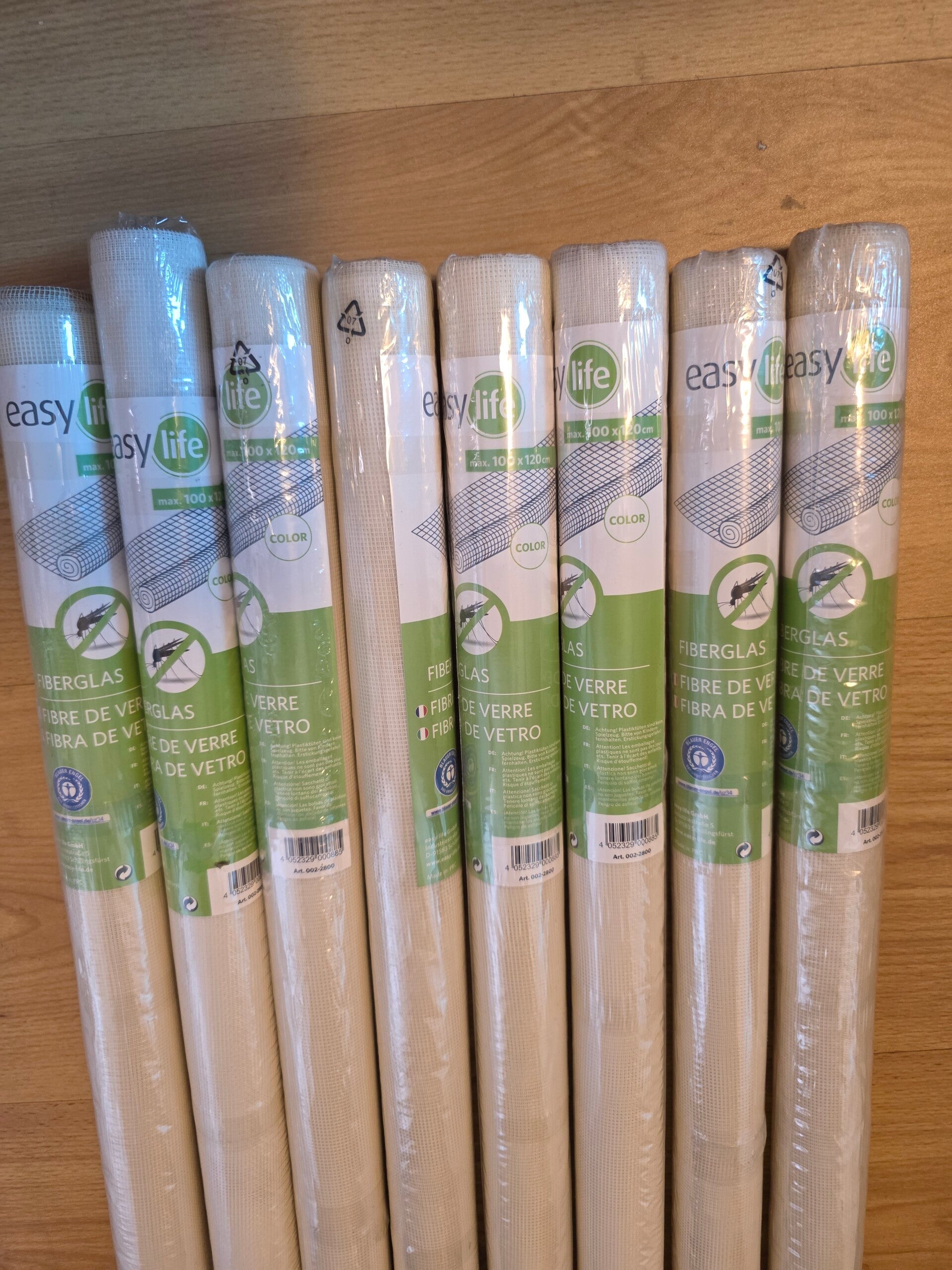 Fliegengitter easylife Fiberglas 100x200cm (4,16€/m²); 1,20x30m (2,22€/m²)