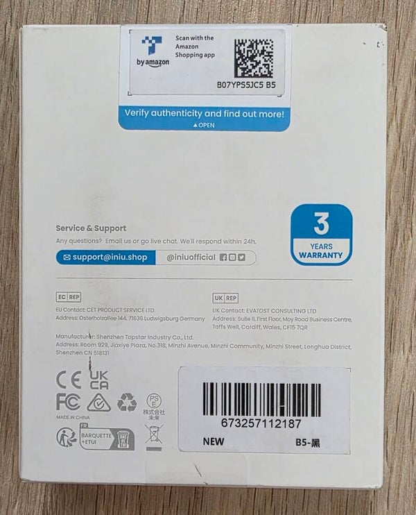 Die INIU Power Bank ist eine Powerbank mit einer Kapazität von 20000mAh. Sie verfügt über einen USB-C Ein- und Ausgang und ist somit universell kompatibel. Das Gerät ist in der Farbe Schwarz erhältlich und wiegt nur 0,97 Pfund.