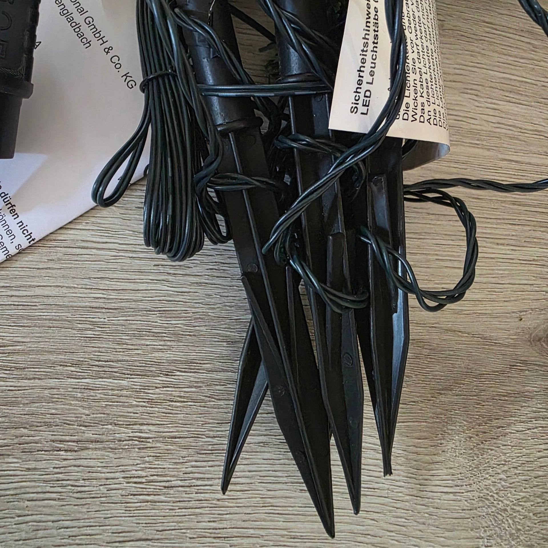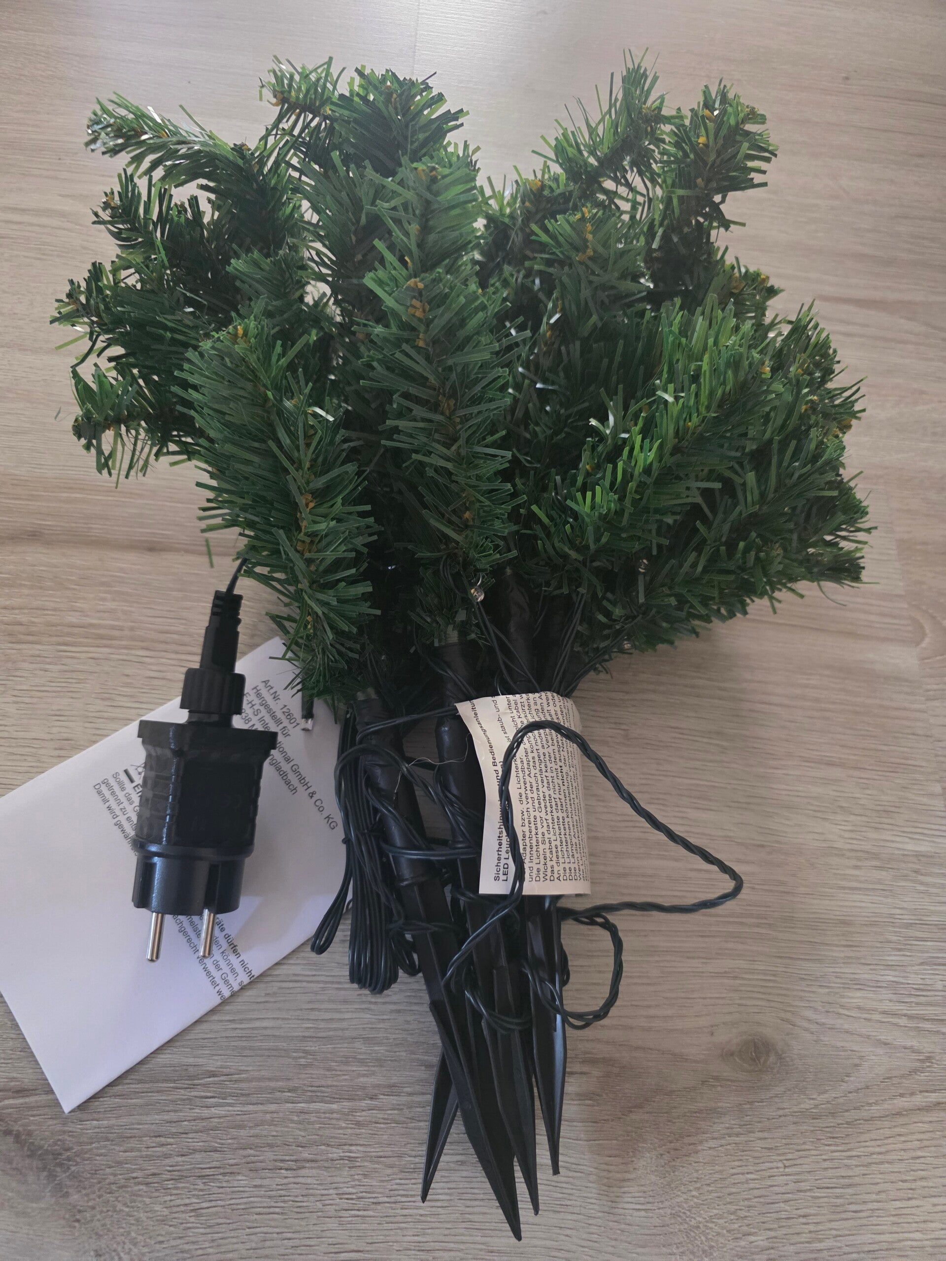• Höhe der Tanne je ca. 25cm, Breite ca. 13cm • 70cm Abstand zwischen den Tannen • 5m Zuleitung • IP44 • Außenadapter inkl. Erdspielsen