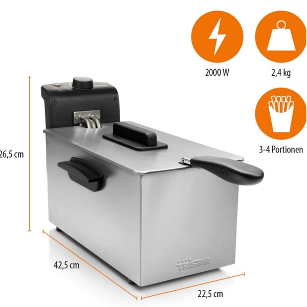 Tristar Fritteuse, 3L Kapazität, 2000W, Einstellbarer Thermostat (130-190°C), Überhitzungsschutz, Spülmaschinenfeste Teile, Leicht zu Reinigen