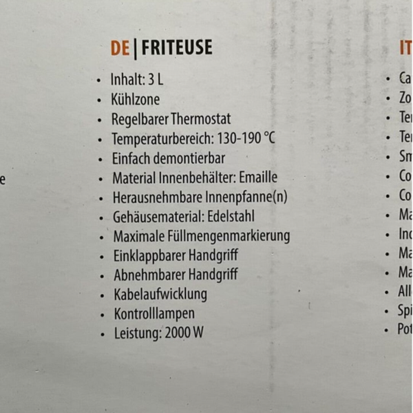 Dank einer Leistung von 2000 Watt erreicht die Fritteuse rasch die gewünschte Temperatur.