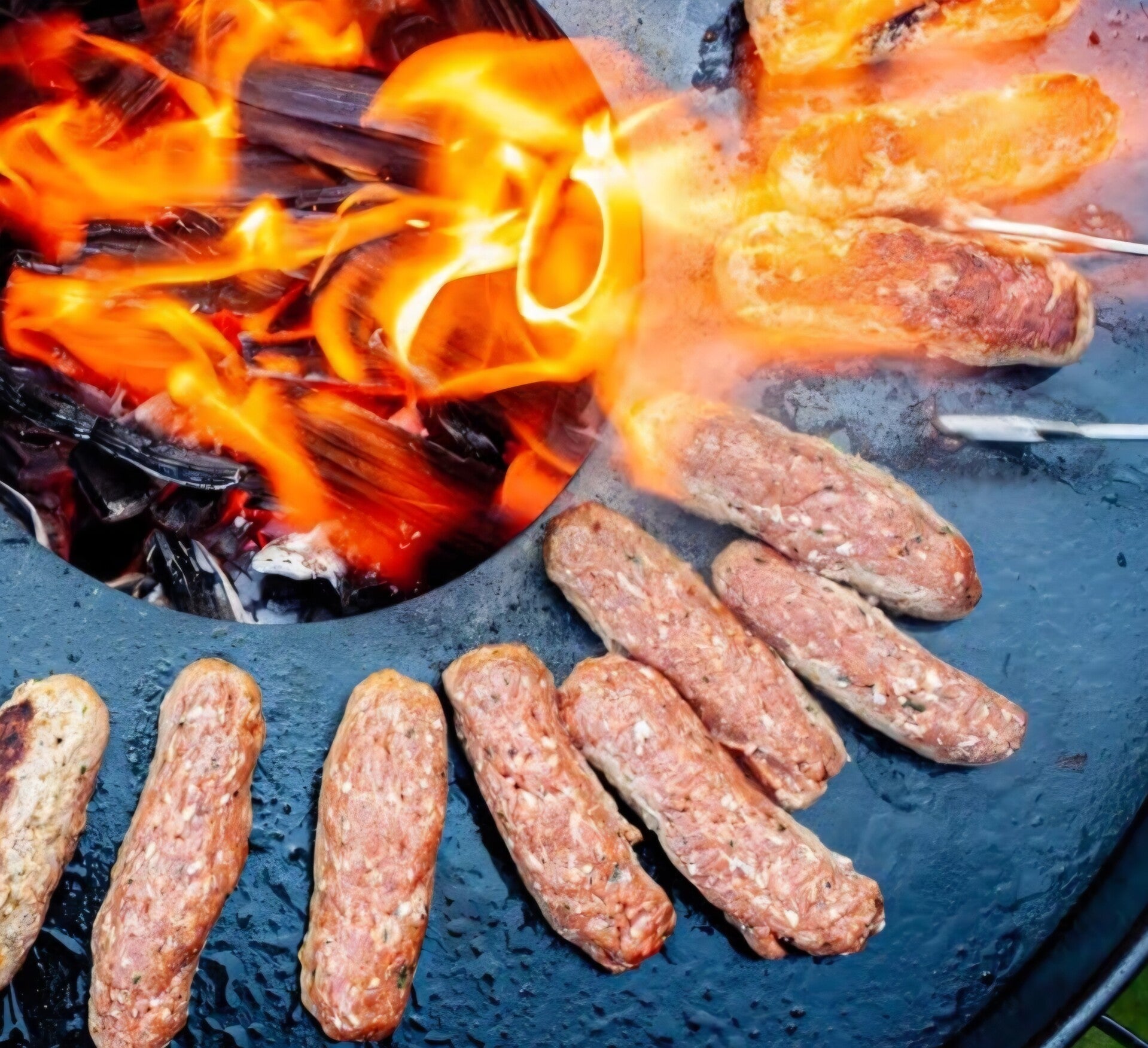 Die Feuerplatte wölbt sich beim ersten Einbrennen - das ist entscheidend und sorgt für leckere Röstaromen am Fleisch, während Fette ins Feuer abfließen können.